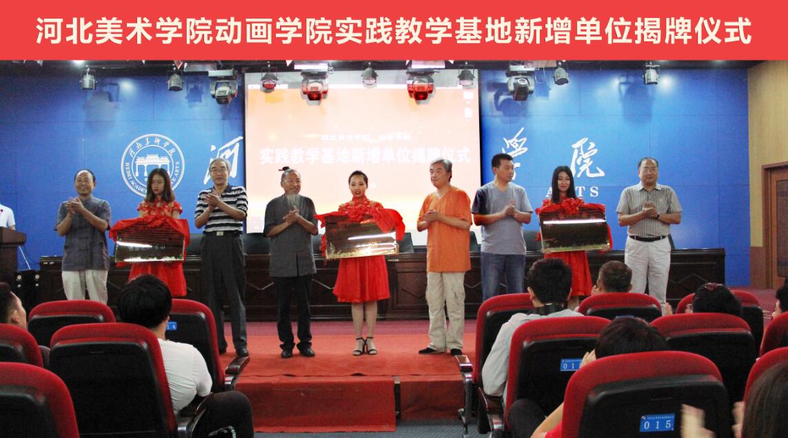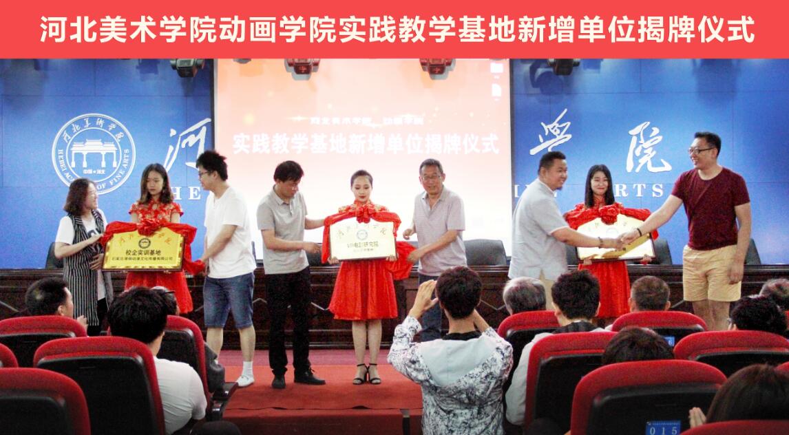 2017年6月19日上午,我校动画学院实践教学基地在正成国际报告厅为河北美术家协会动画艺术委员会、河北美术家协会漫画艺术委员会秘书处、河北美术家协会漫画艺术委员会创作基地、动画学院VR电影研究院、燕晋影视项目实训室、漫萌动漫实训室六家新增单位举行揭牌仪式。