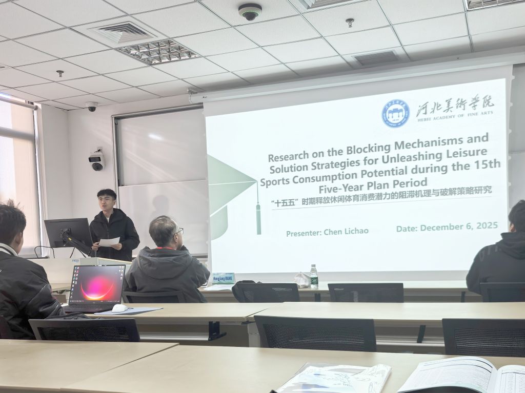 在“New Consumption and Experience of Sports and leisure”专题论坛中,陈立超以“Research on the Blocking Mechanisms and Solution Strategies for Unleashing Leisure Sports Consumption Potential during the 15th Five-Year Plan Period”为题作学术报告。他系统分析了休闲体育消费面临的阻滞机理与破解策略,报告内容扎实,视角前瞻,受到与会者的积极讨论与共鸣。